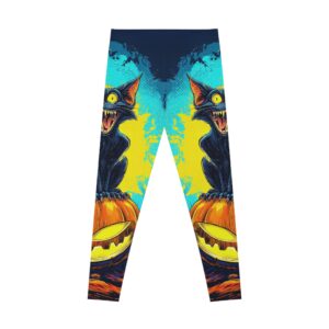 Black Cat On Jack O’ Lantern Pop 60’s Art Style Stretchy Leggings, Comfortable Fitness Wear