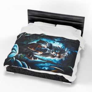 Wrap yourself in warmth and whimsy with this velveteen plush blanket. Featuring a playful cat perched atop a glowing pumpkin, it adds a splash of color and charm to any space. This blanket is perfect for cozy movie nights, festive gatherings, or simply lounging around at home. Its soft texture invites relaxation, making it an ideal companion for chilly evenings. Targeted at adults who appreciate unique and artistic decor, this blanket is especially perfect for Halloween season, fall celebrations, or as a thoughtful gift for cat lovers and cozy enthusiasts alike. Transform your living room or bedroom into a cozy retreat with this vibrant and imaginative piece.