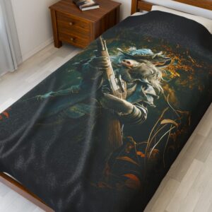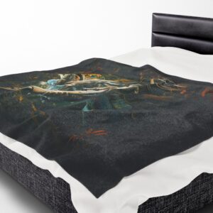 Wrap yourself in warmth and whimsy with this velveteen plush blanket. Featuring a playful cat perched atop a glowing pumpkin, it adds a splash of color and charm to any space. This blanket is perfect for cozy movie nights, festive gatherings, or simply lounging around at home. Its soft texture invites relaxation, making it an ideal companion for chilly evenings. Targeted at adults who appreciate unique and artistic decor, this blanket is especially perfect for Halloween season, fall celebrations, or as a thoughtful gift for cat lovers and cozy enthusiasts alike. Transform your living room or bedroom into a cozy retreat with this vibrant and imaginative piece.