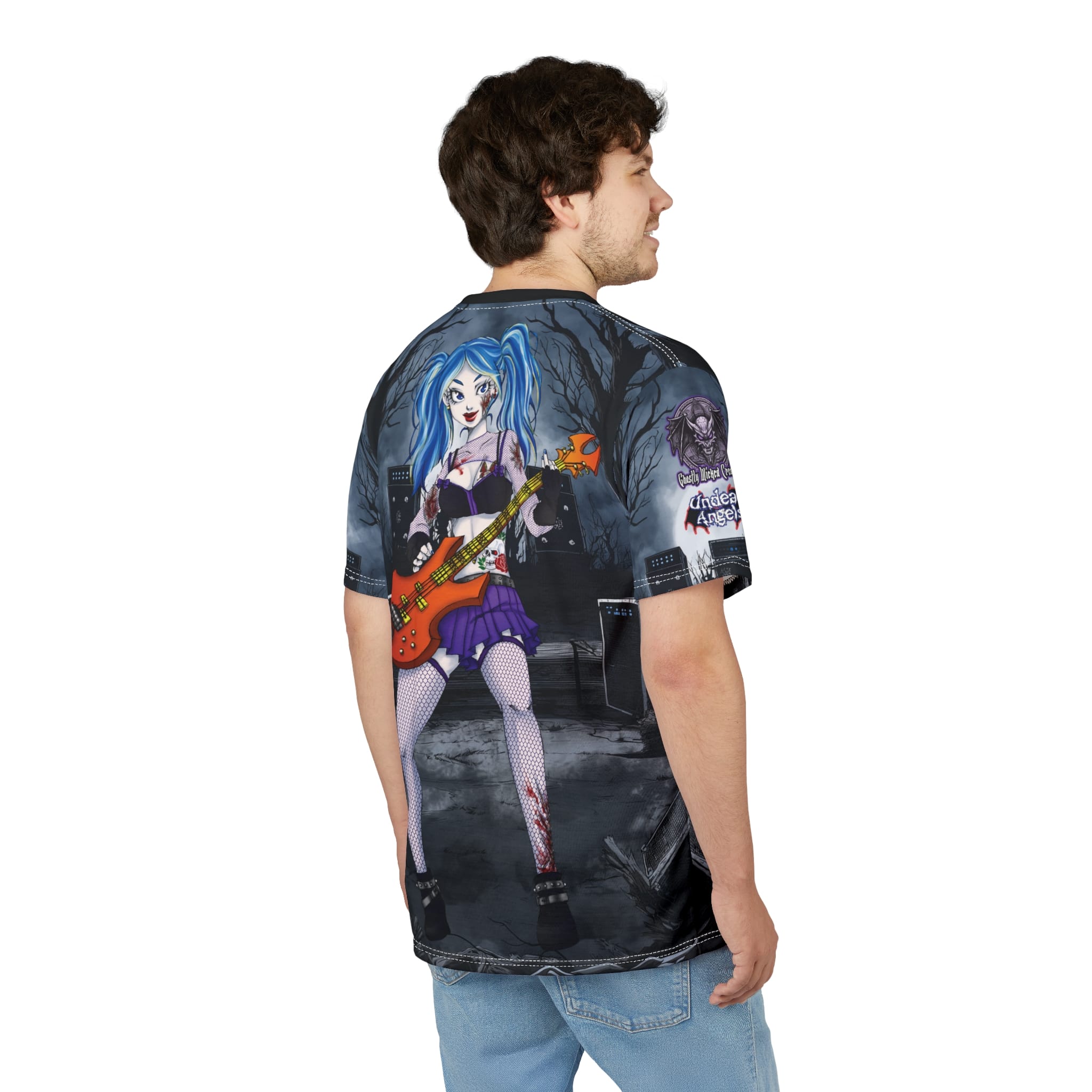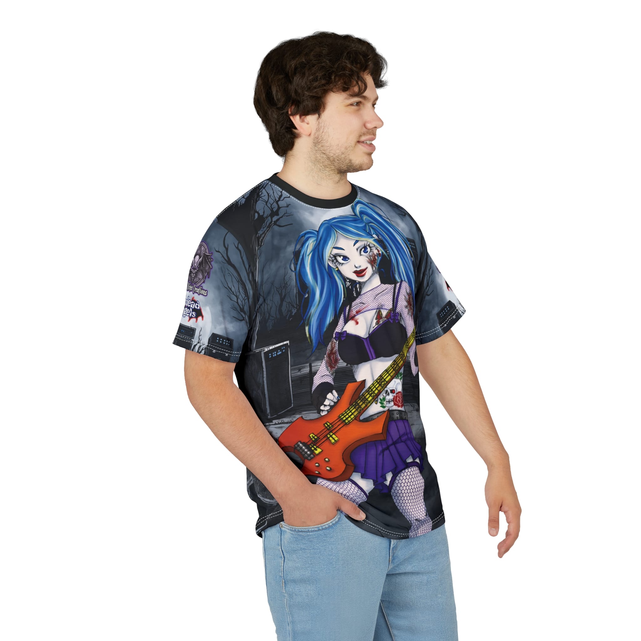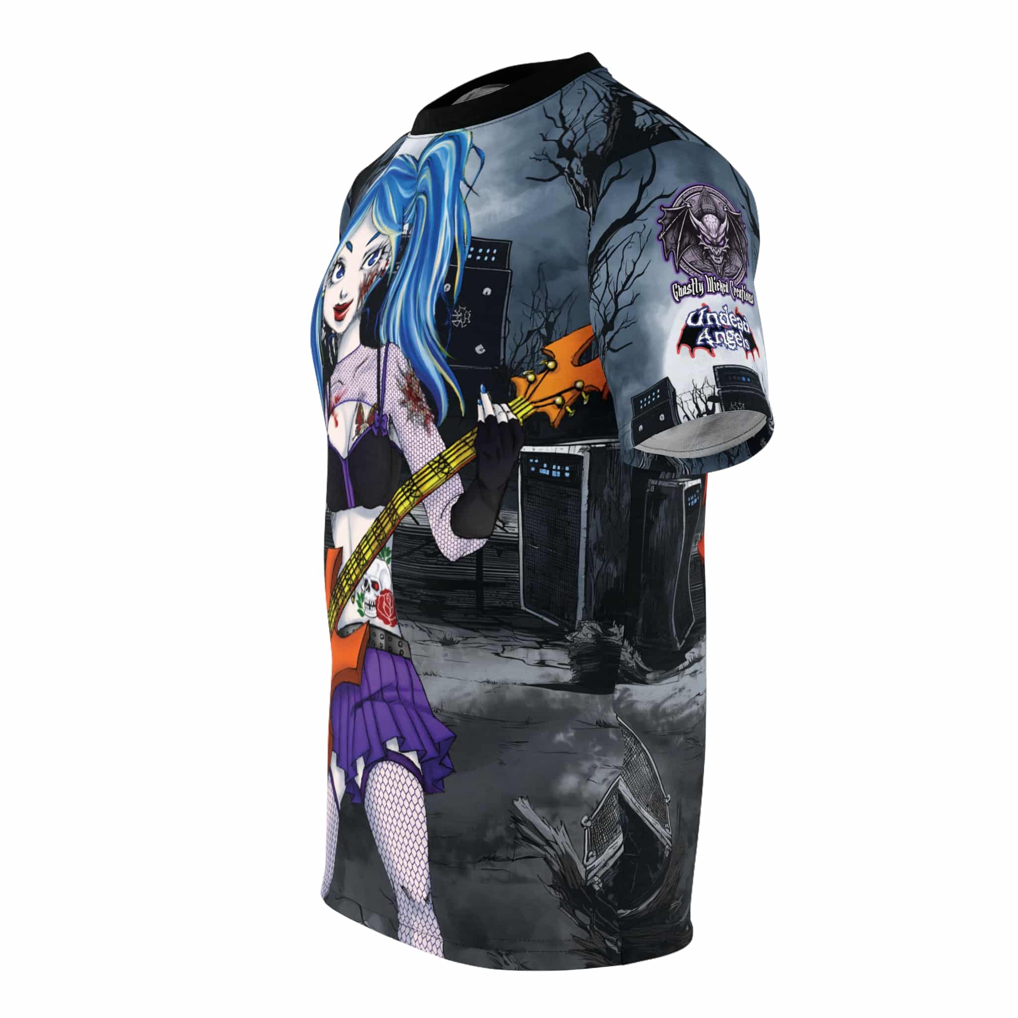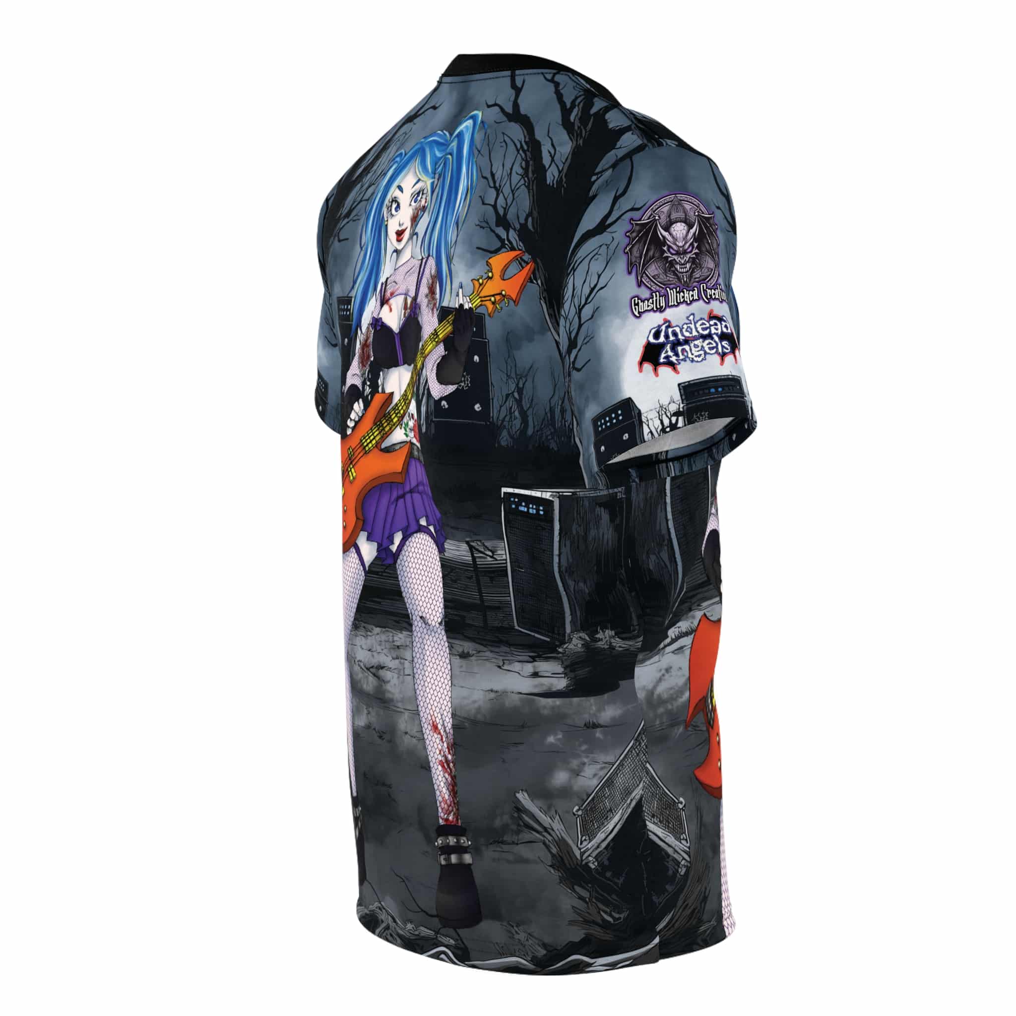 Ashley Undead Angel Bass Guitarist Classic Art No Text Unisex Cut & Sew Tee (AOP)