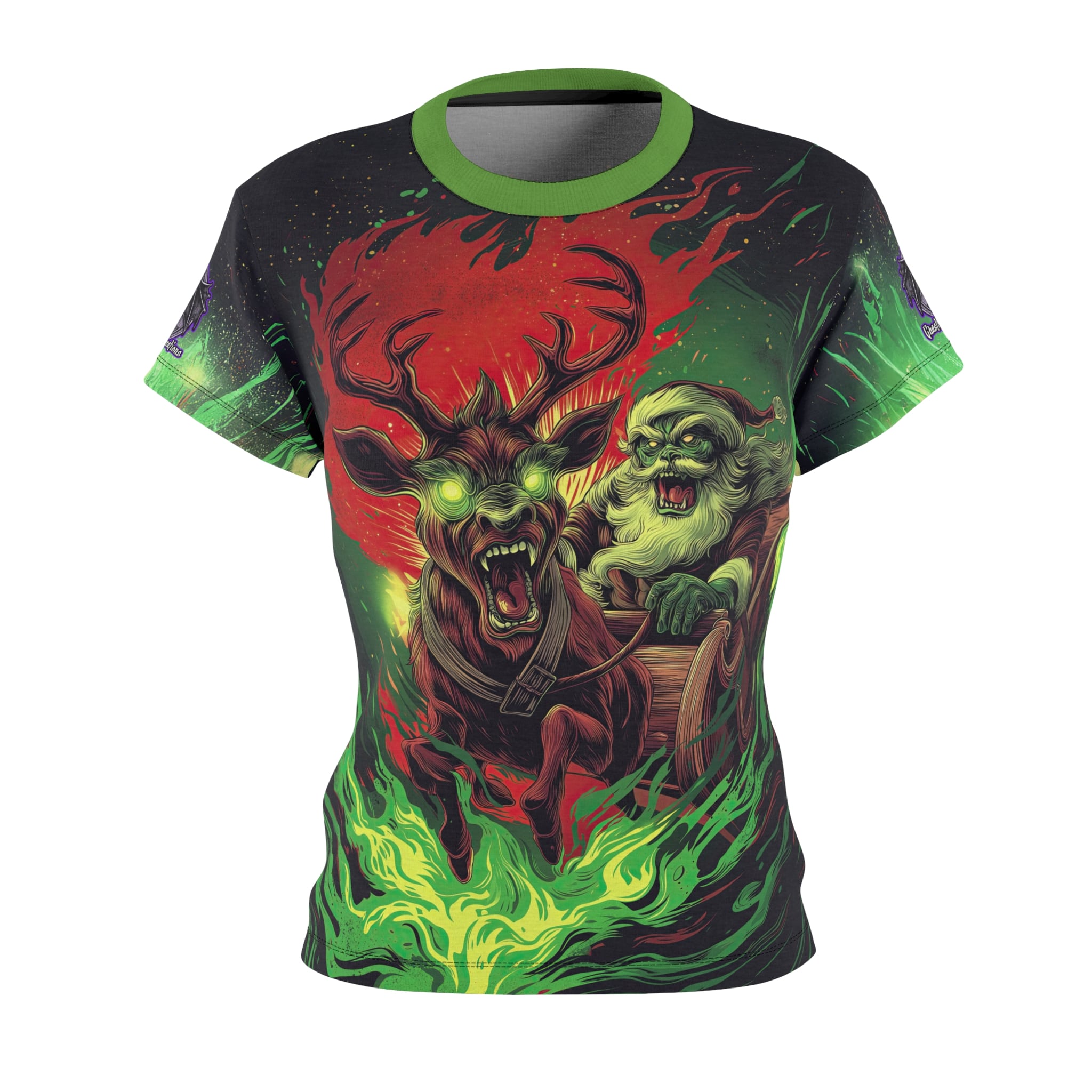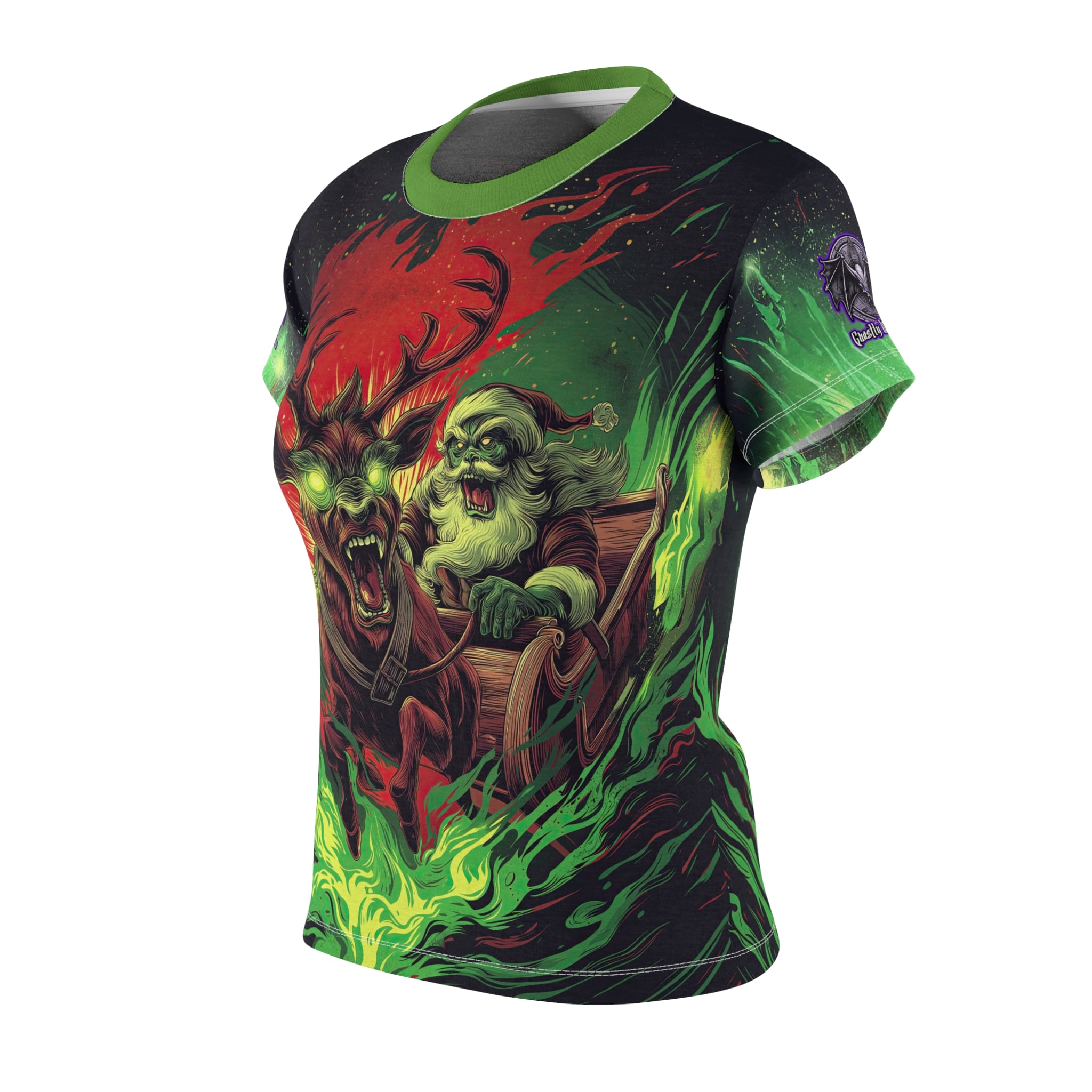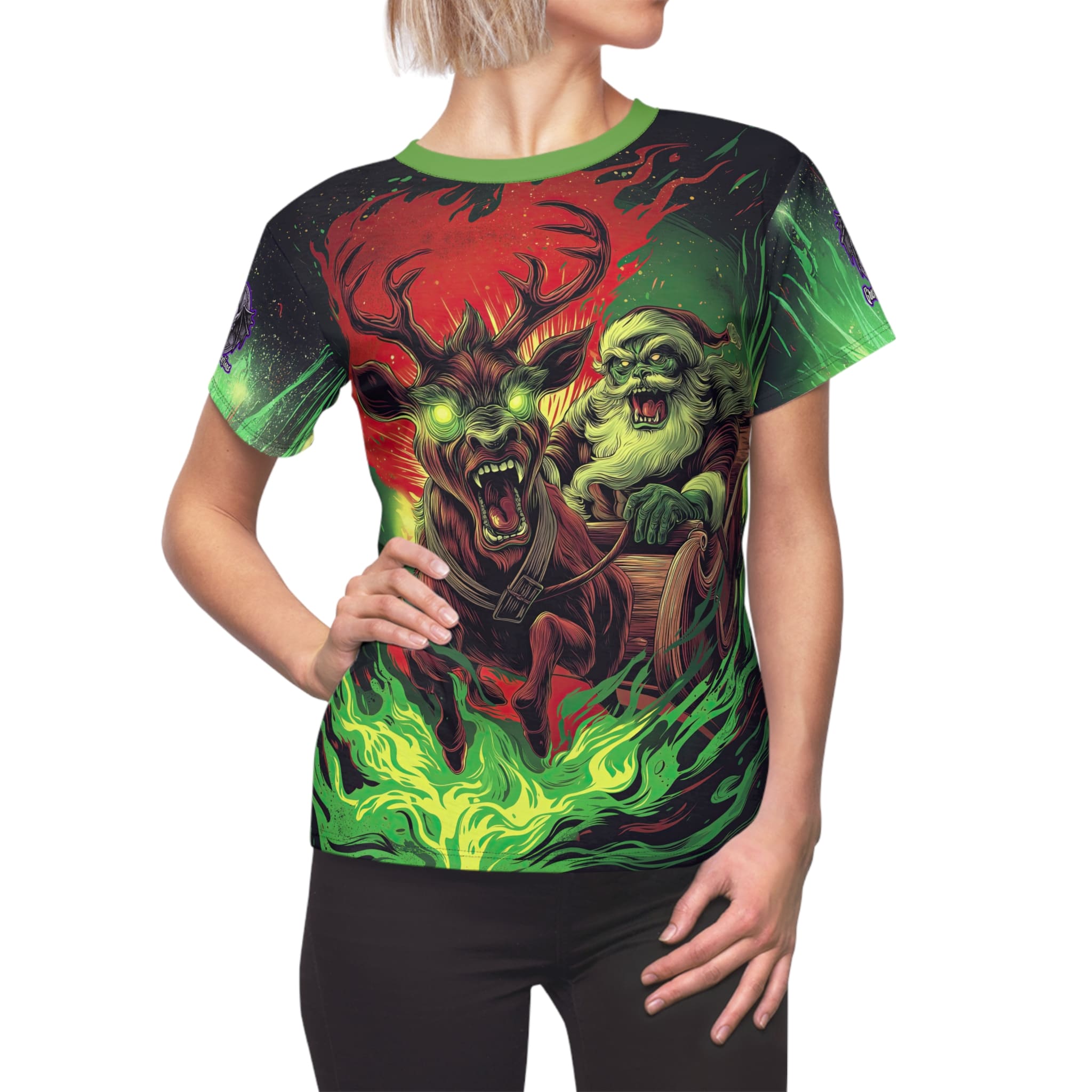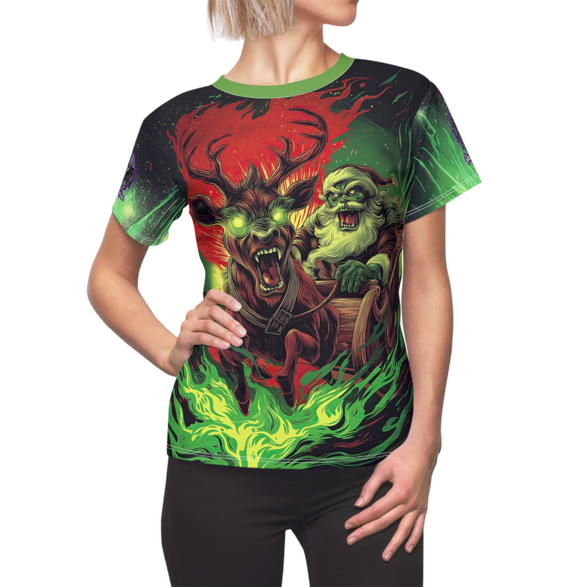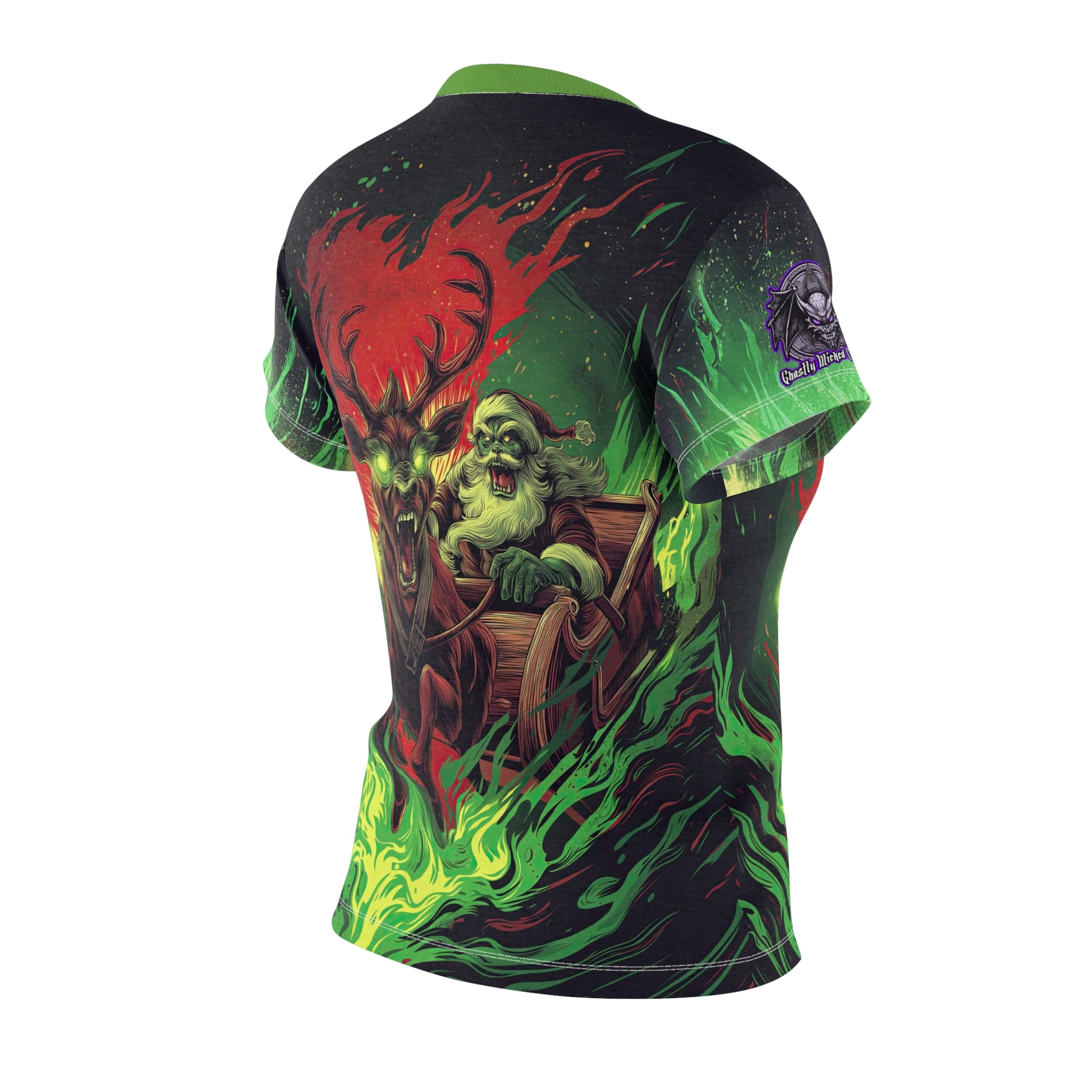 Demonic Santa Sleigh I Women’s Tee is a strong and durable synthetic fabric tee that features a ribbed knit collar with seam and shoulder tape for structural support. This regular fit tee is tagless and runs true to size, making it a comfortable and stylish choice for everyday wear.