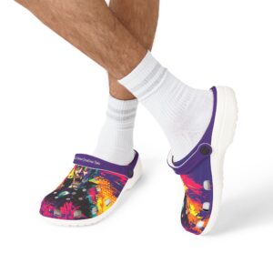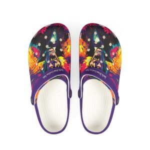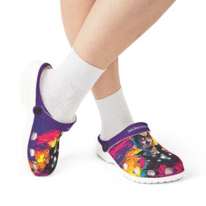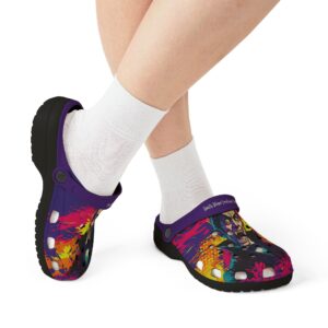 These Dracula Pop 60’s Art Style clogs are a trendy and comfortable addition to your shoe collection. Perfect for both indoor and outdoor wear, the soft EVA sole provides a great wearing feeling and anti-slip performance. The black and white color options and printed exterior give these clogs a fun and unique look. Ideal for those who love unique and quirky fashion styles, these clogs are great for Halloween parties, costume events, and everyday wear.