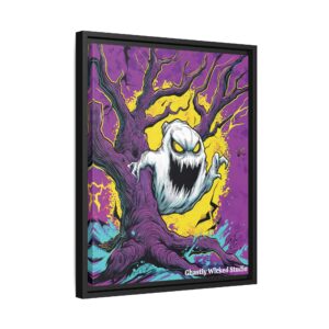 Ghost & Spooky Tree II Pop 60’s Art Style Matte Canvas, Black Frame Halloween
