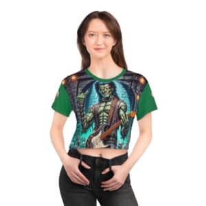 Monster Mosh 2024 Tour Frankie On Guitar MM-D002 Crop Tee (AOP) – Green Sleeves