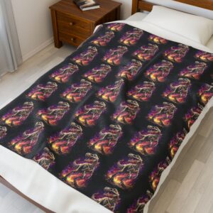 Wrap yourself in warmth and whimsy with this velveteen plush blanket. Featuring a playful cat perched atop a glowing pumpkin, it adds a splash of color and charm to any space. This blanket is perfect for cozy movie nights, festive gatherings, or simply lounging around at home. Its soft texture invites relaxation, making it an ideal companion for chilly evenings. Targeted at adults who appreciate unique and artistic decor, this blanket is especially perfect for Halloween season, fall celebrations, or as a thoughtful gift for cat lovers and cozy enthusiasts alike. Transform your living room or bedroom into a cozy retreat with this vibrant and imaginative piece.