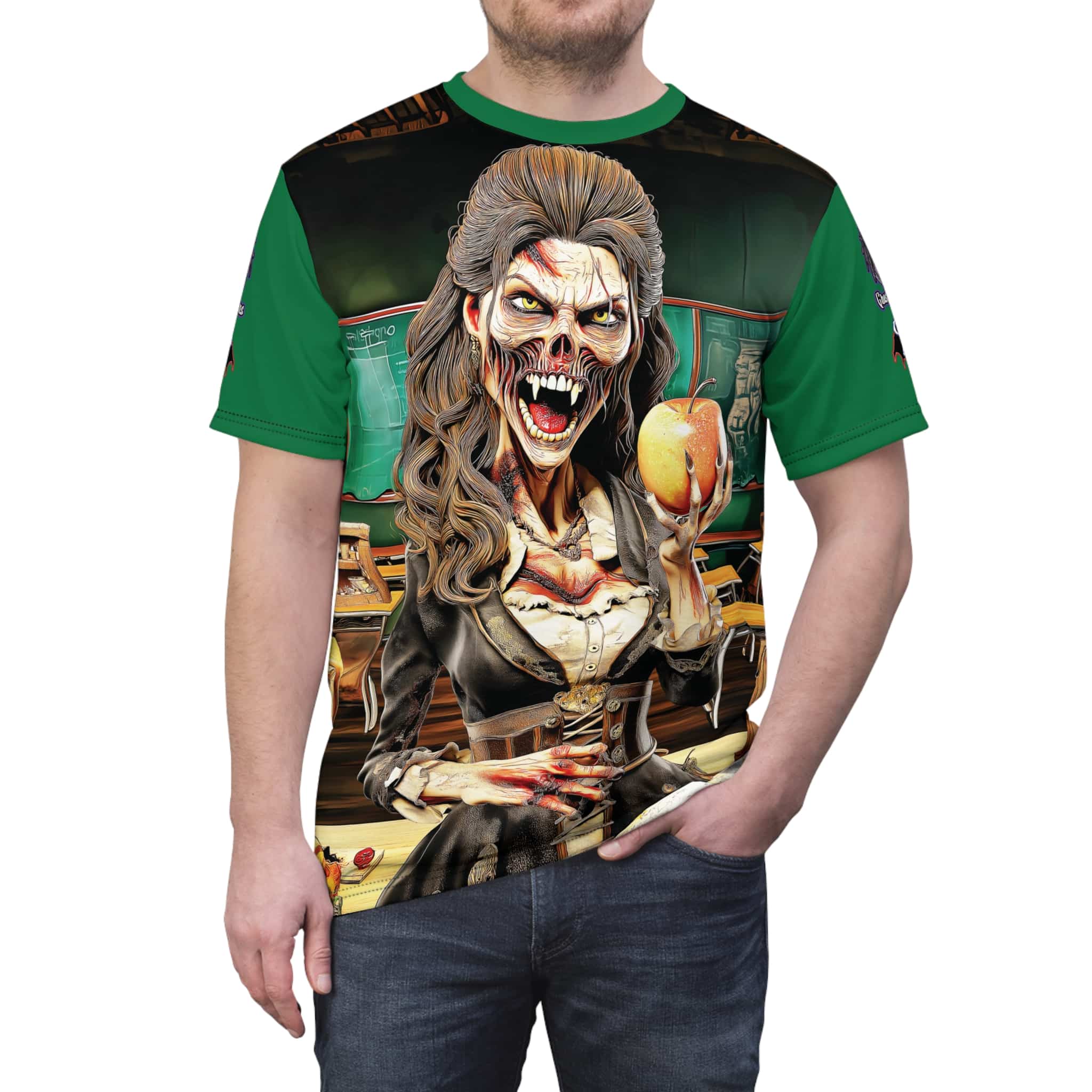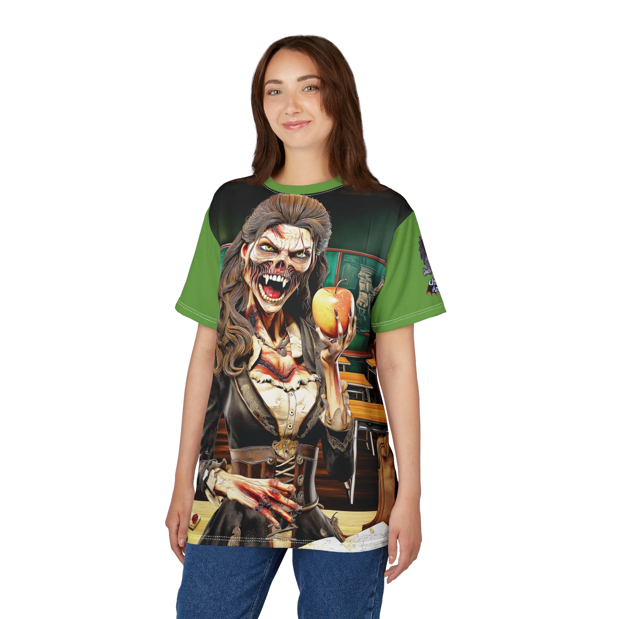 Undead Angels Teacher Charlotte Full Rot Tee Unisex (AOP) Green