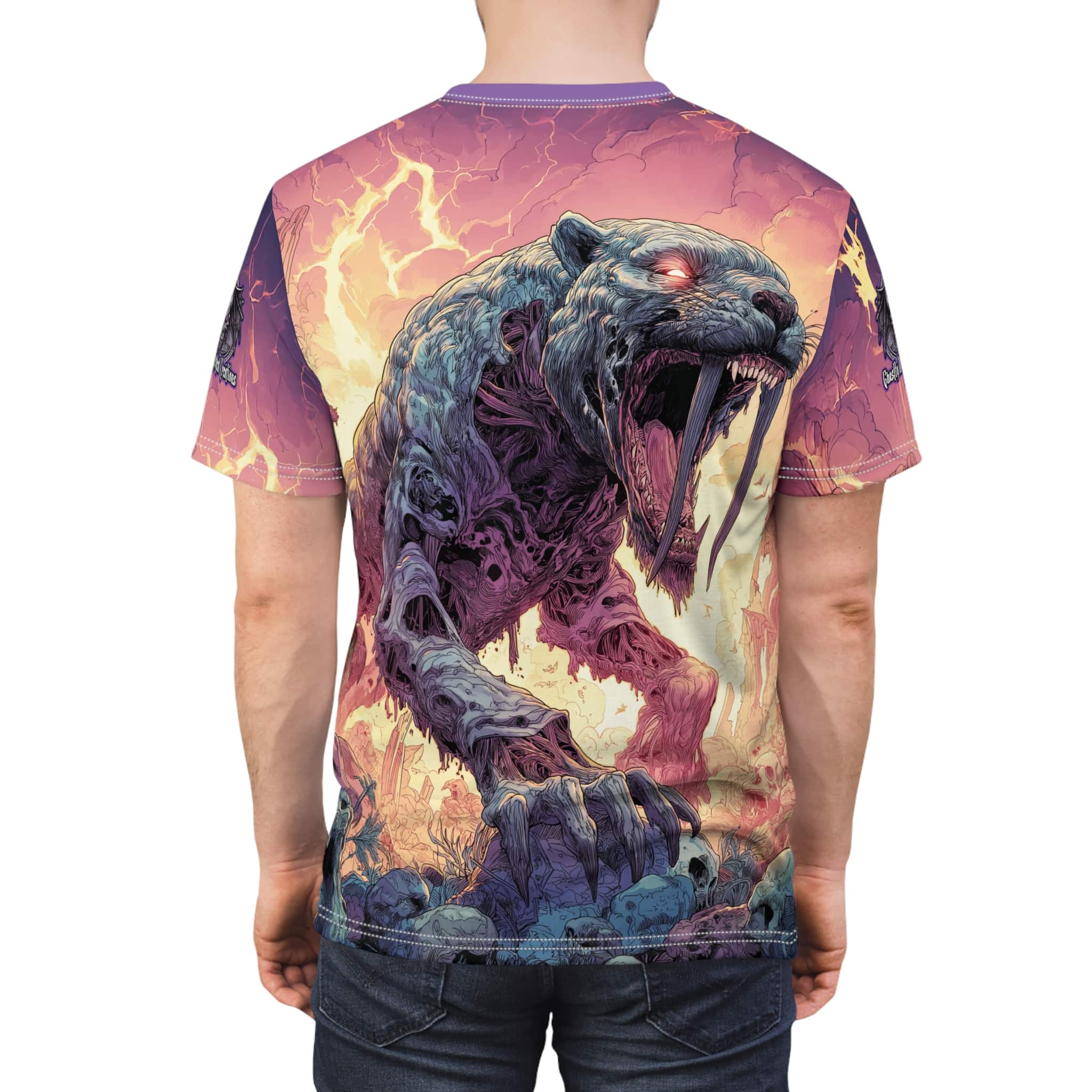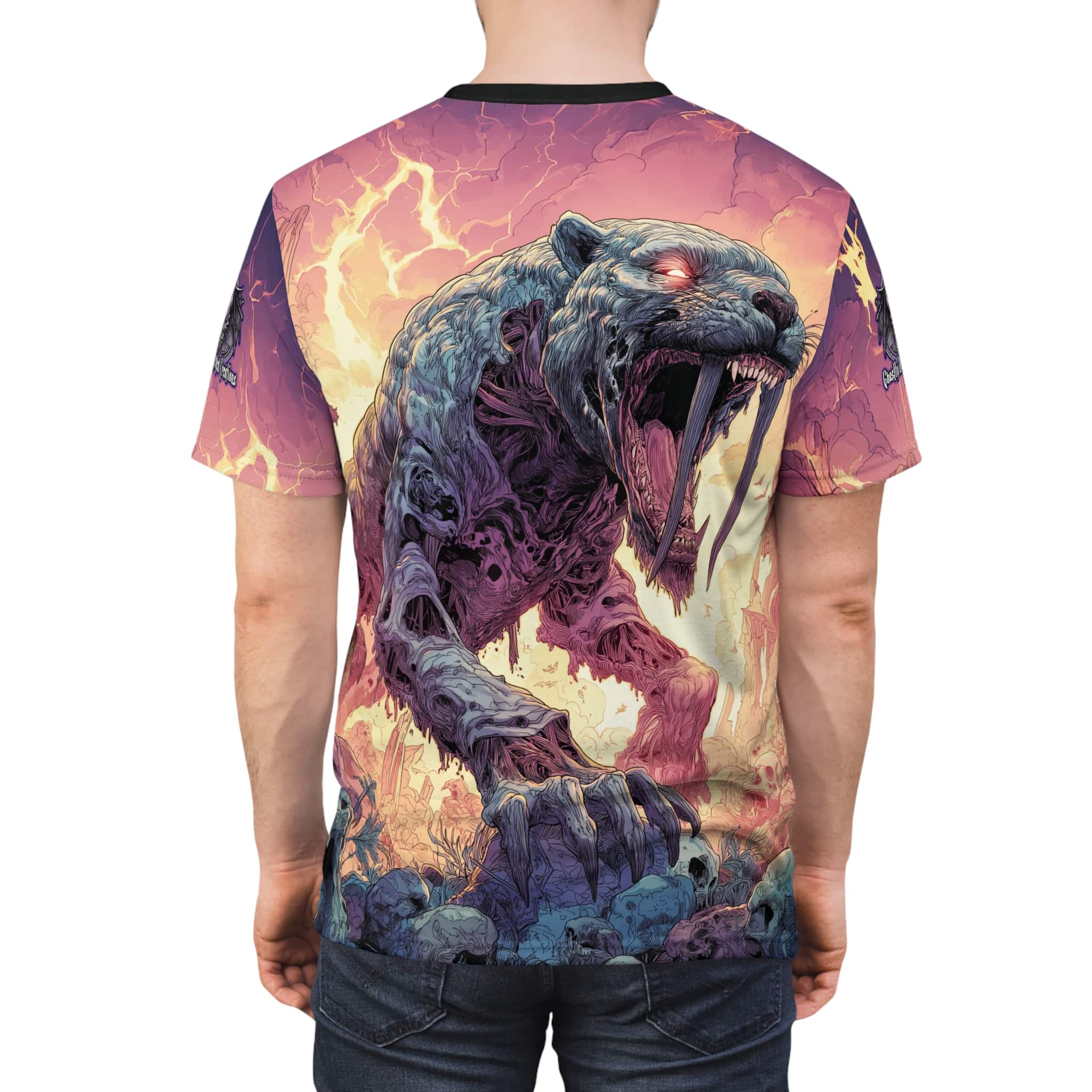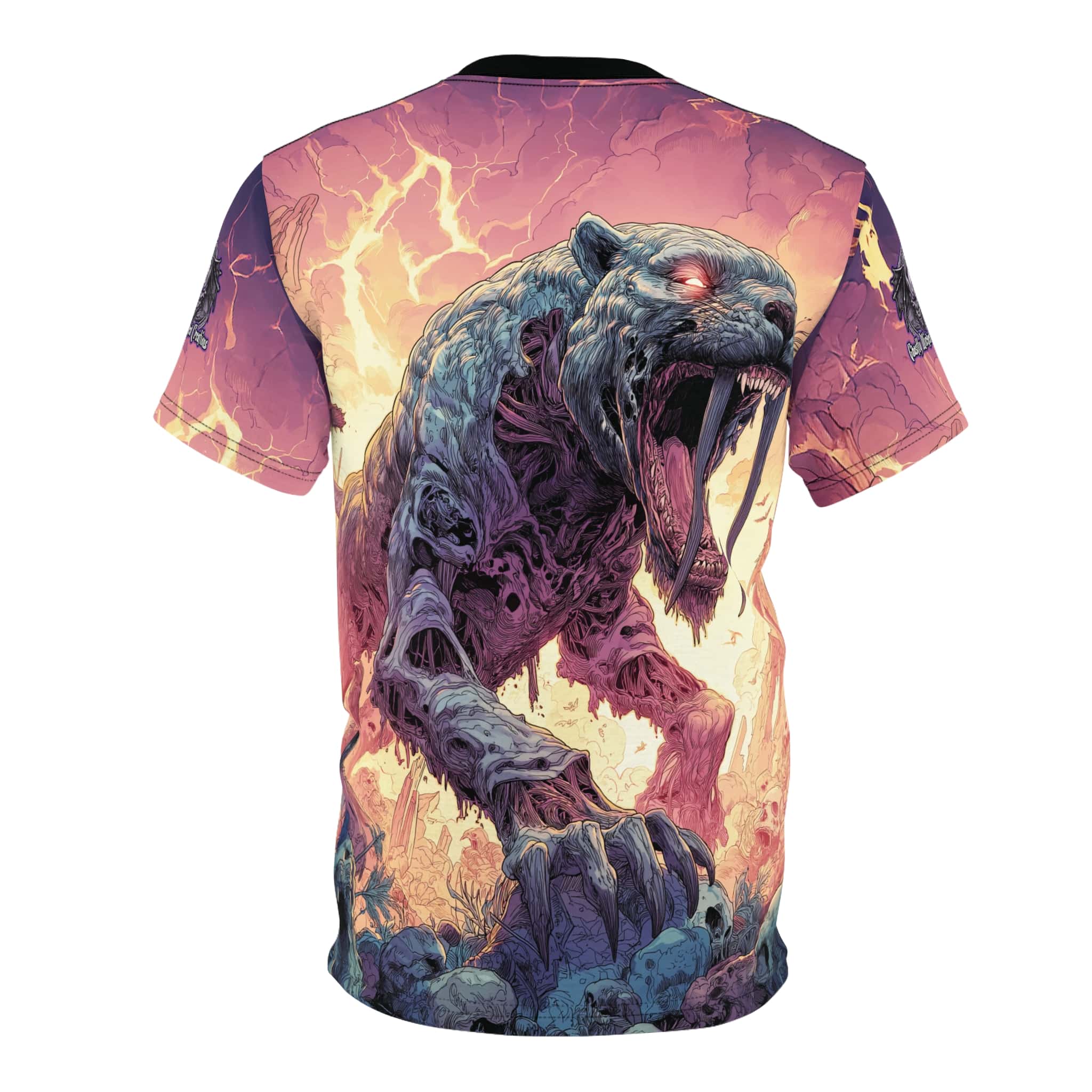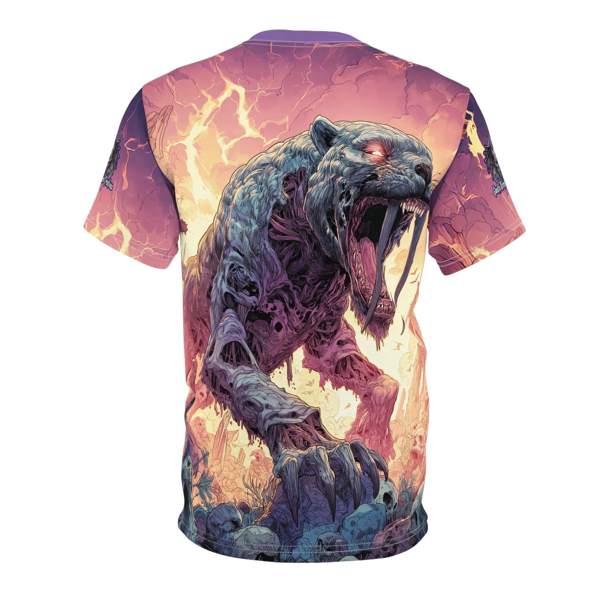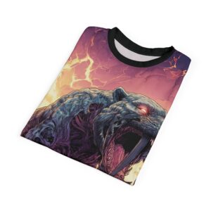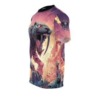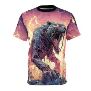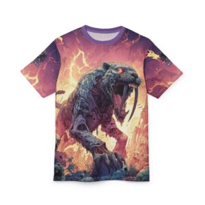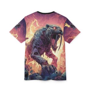 This Zombie Smilodon Sabretooth Cat In Volcanic Wasteland Tee is a fun and unique addition to any wardrobe. Perfect for dinosaur and zombie enthusiasts, this tee gives off a cool and quirky vibe. It’s great for casual wear and can be a conversation starter. Ideal for Halloween, themed parties, and everyday wear.