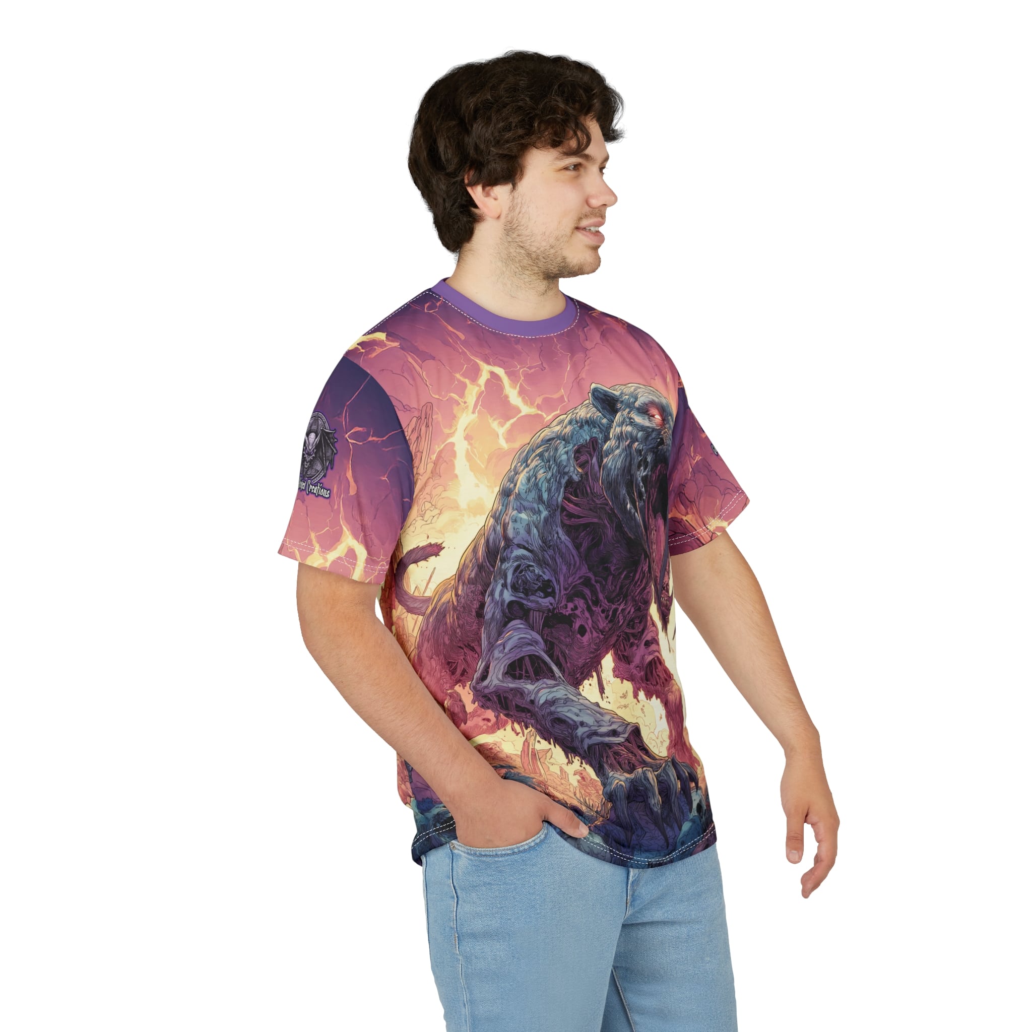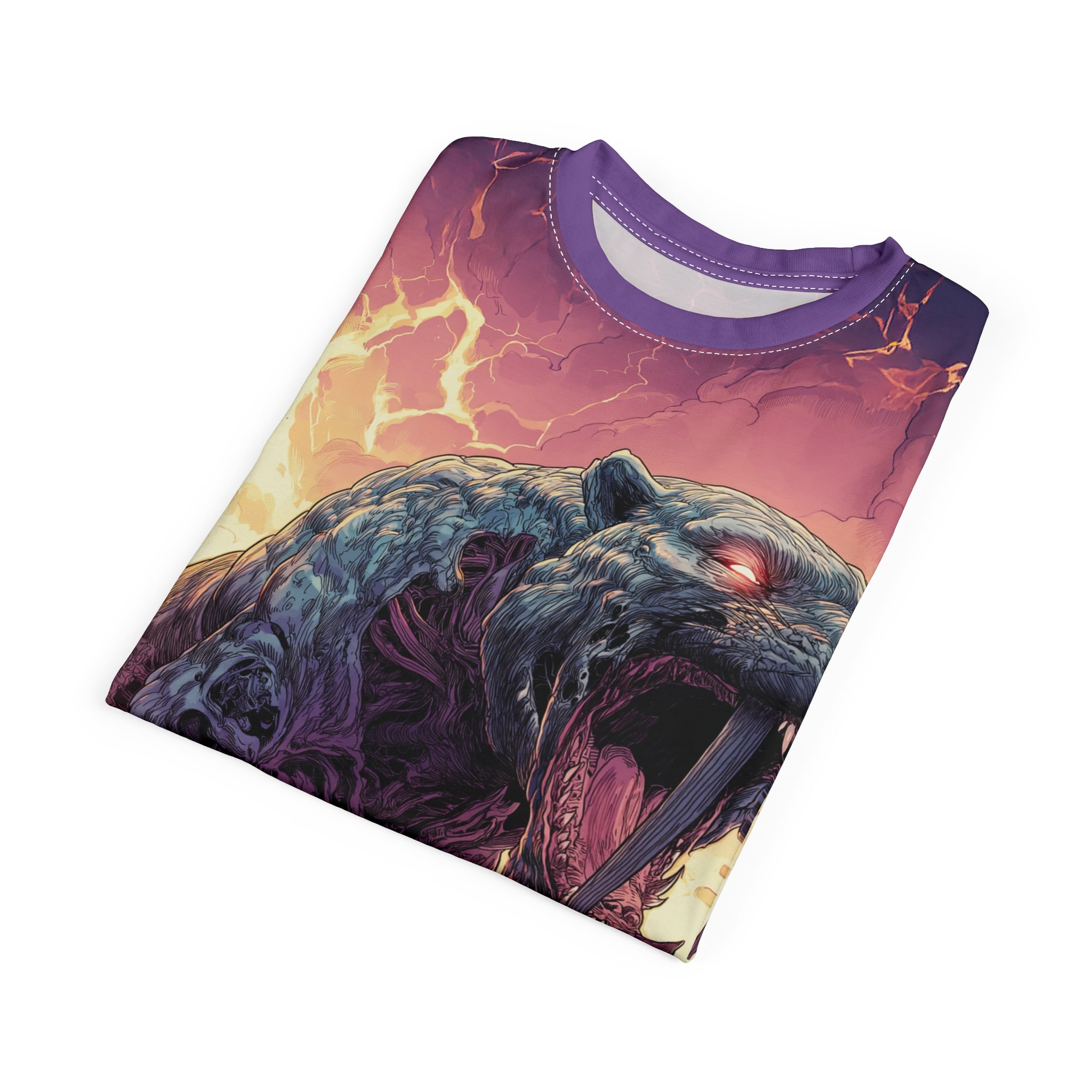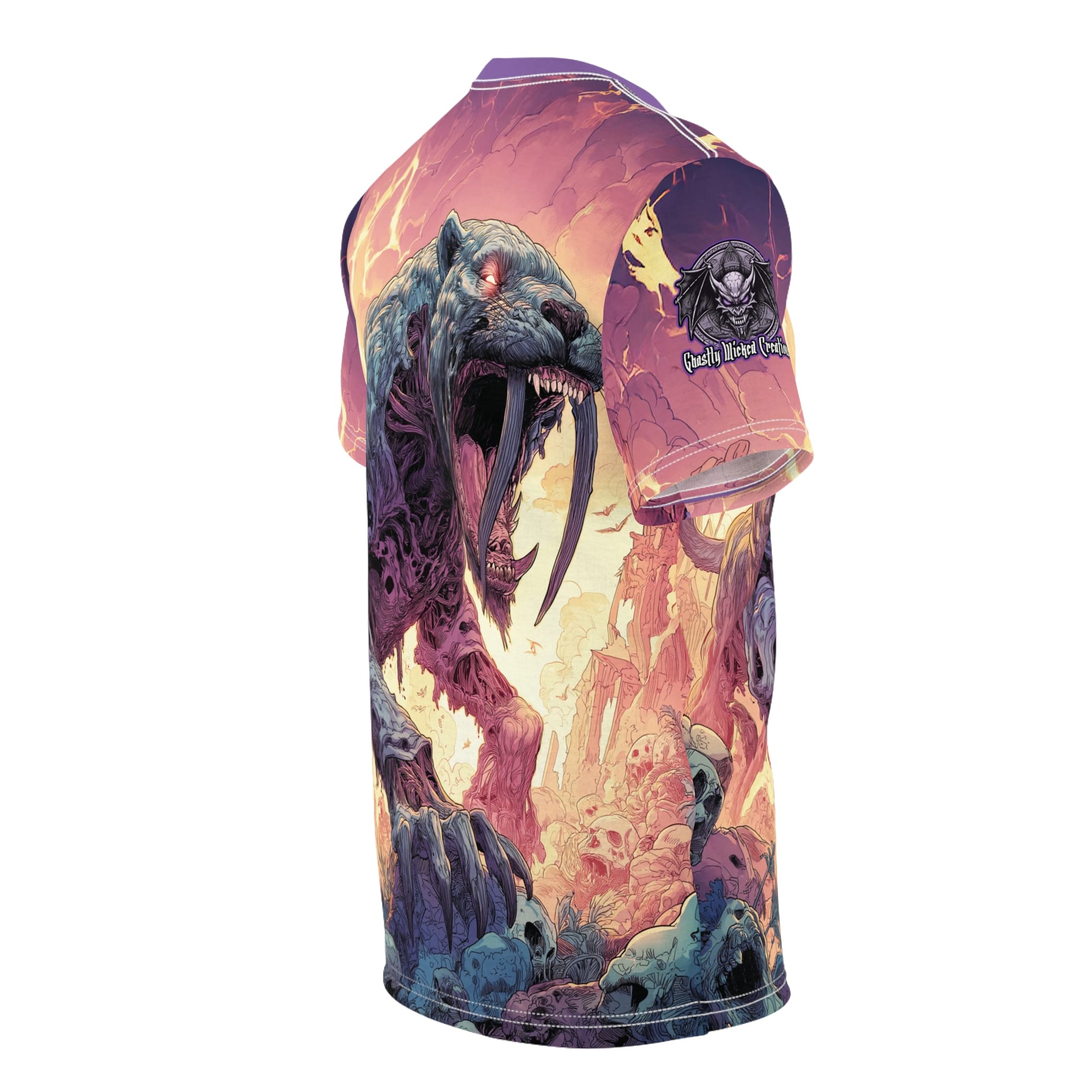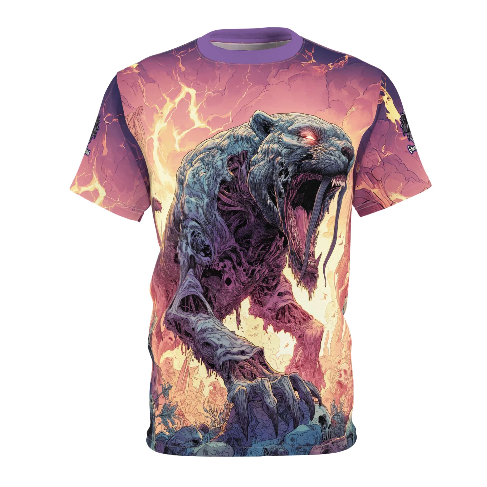 This Zombie Smilodon Sabretooth Cat In Volcanic Wasteland Tee is a fun and unique addition to any wardrobe. Perfect for dinosaur and zombie enthusiasts, this tee gives off a cool and quirky vibe. It’s great for casual wear and can be a conversation starter. Ideal for Halloween, themed parties, and everyday wear.